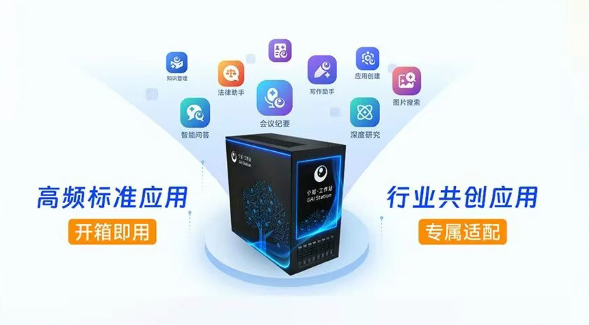 将高效的AI算力、先进的主流模型与企业级知识库一体化集成于“个知·智能工作站”。通过这台仅有0.1立方米的设备,即可快速完成私有数据、行业智慧与AI操作系统的深度融合,实现智能化升级的即时启动。