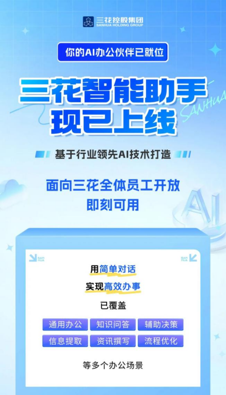 在席卷全球的AI浪潮中,一场聚焦于工作效率的智能变革正在三花智控内部悄然发生。而这智能变革的背后则是三花智控与每日互动经过数月联合共创与精心打磨。如今,三花智控正式推出三花智能助手,这位24小时在线、业务全能的“AI智能伙伴”让每位三花员工都拥有了触手可及的AI能力。