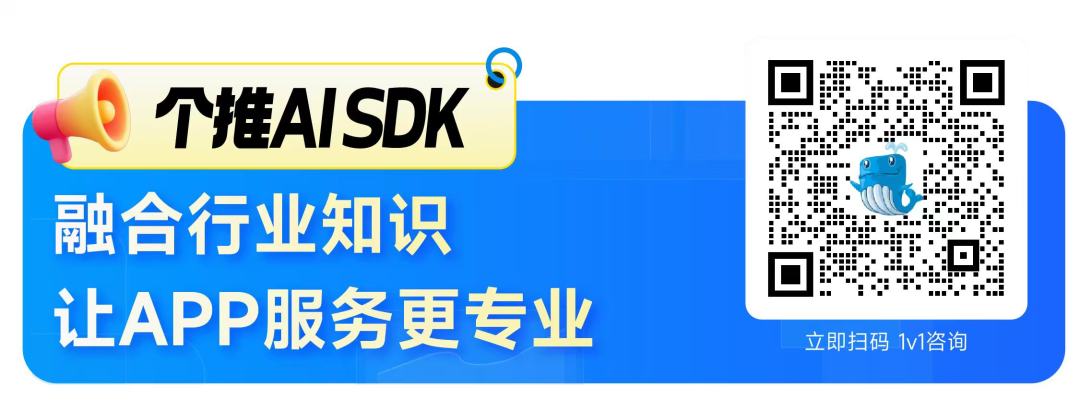 作为开箱即用的AI能力集成工具,个推AI SDK无需开发者从零搭建复杂AI架构,通过极简集成即可让APP快速完成智能化升级,大幅降低企业的研发成本与时间成本,助其加速抢占市场先机。