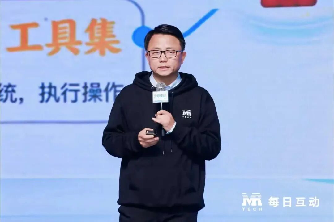 随后,中国青年企业家协会数字经济专业委员会主任、每日互动董事长方毅则带来了《用而不拥、流而不留》的分享,为活动开题。他动情地说,从西溪到云谷,今年已经是我们连续多年发起“论数”,这既是我们每年坚持的产业交流,也是一次围绕“AI落地”的深度对谈。今年的主题“仝行共创”的“仝”,其实是来自于我在去年11月初提议的将“仝”(tóng)作为人工智能的简称。我认为,仝竖着看是A和I,也是人和工,正好代表AI,可以读作“ai”,相信未来也会进入《新华字典》。