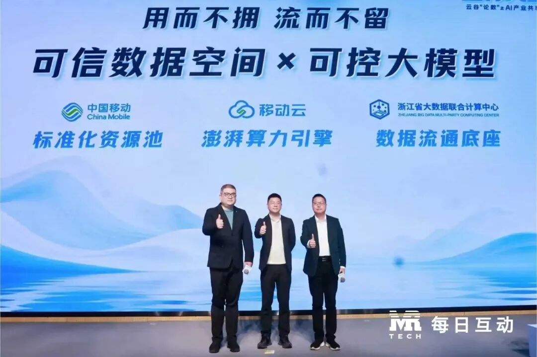 ▲中国移动浙江公司、移动云、浙江省大数据联合计算中心共同发布可信数据空间×可控大模型解决方案